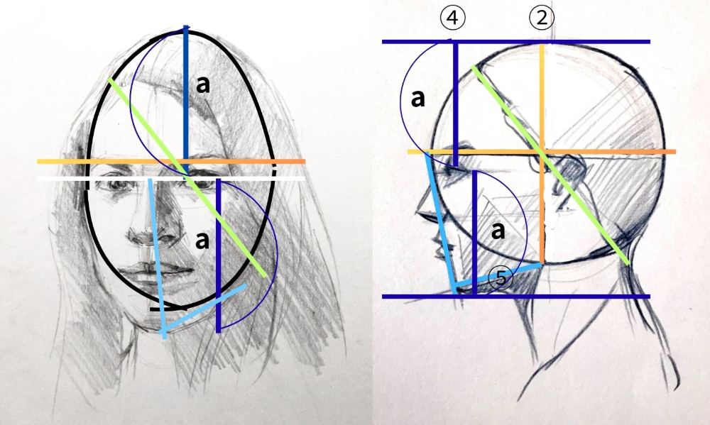 顔デッサンのプロポーション/数学と美/デッサンスキル
