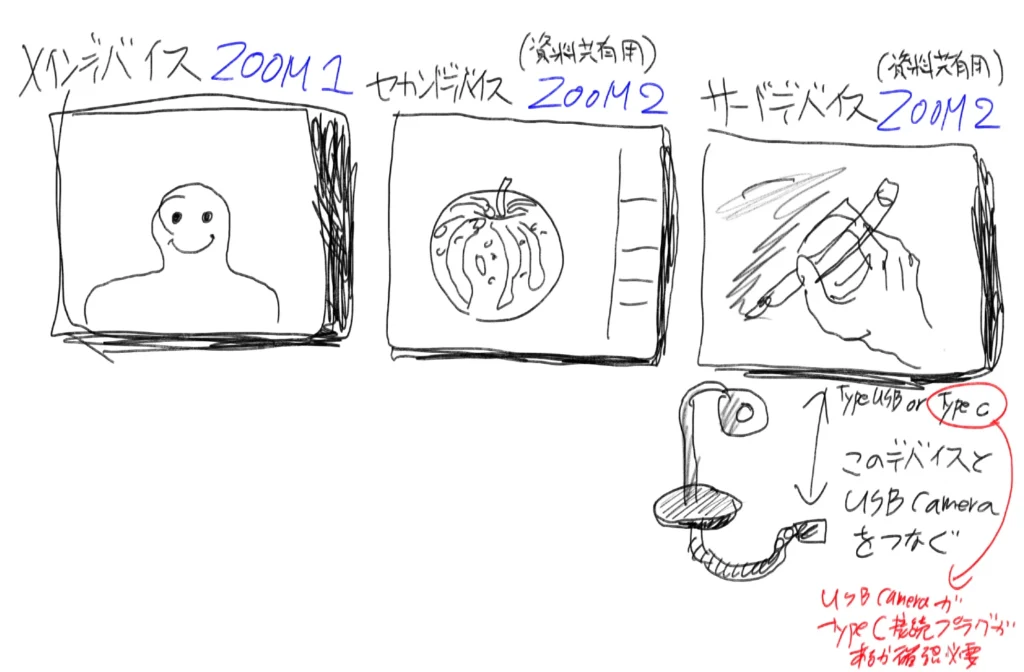 デバイス3→Zoom2 /手元カメラ(受講生)USBでパソコンに繋ぐ